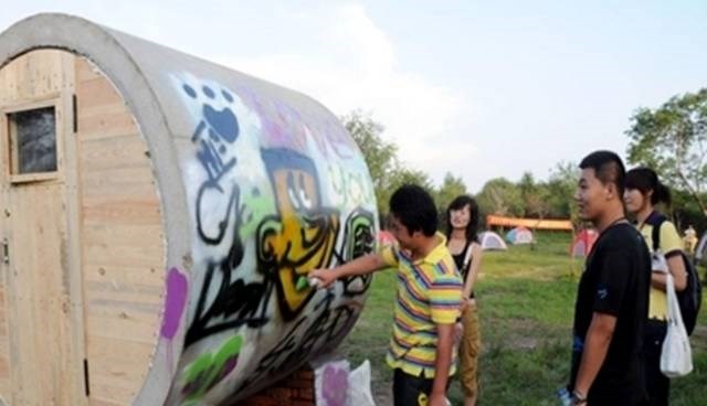 水泥管民宿,水管屋外還有可愛的彩繪圖樣,確實增添了不一樣的文化感,第一眼見到,首先大概就是摸出手機咔嚓咔嚓個痛快了。水泥管,在很多人眼中也曾是最普普通通的元素。如今,隨著創(chuàng)意層出不窮,水泥管改造也日漸成為了休閑住宿空間的主角。